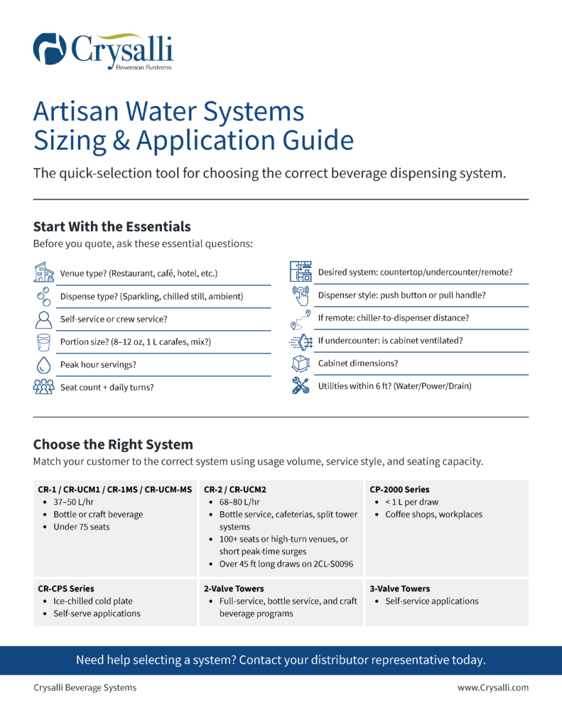 CRYSALLI NEWS! IBC Conversion Download Products Crysalli Brochure 2025 Southern Ice Crysalli ProFusion Artisan Water Systems Sizing & Application Guide Crysalli Flyer ProFusion Systems Glass Filler & Ice/Water Drop-In Stations Designed Quick Reference Guide Crysalli Training Videos